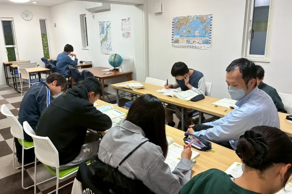 この時間、塾生達は塾内の自習室で各自学習を進めています。